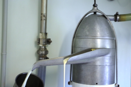 L’écrémage : une partie du lait transformé est écrémé. Le lait pris à la sortie de la traite (t° 35°C) passe dans une centrifugeuse. Par l’action mécanique de la centrifugation, la crème, plus légère que le lait, se sépare. Il faut environ 10 L de lait pour produire 1L de crème. Le lait écrémé servira à fabriquer du fromage blanc à 0% et 3% de matière grasse, de même que du lait ribot demi écrémé. |