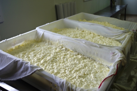 Le lait coagule dans des bacs, et on obtient un caillé assez ferme. Trois produits différents en sont extraits :