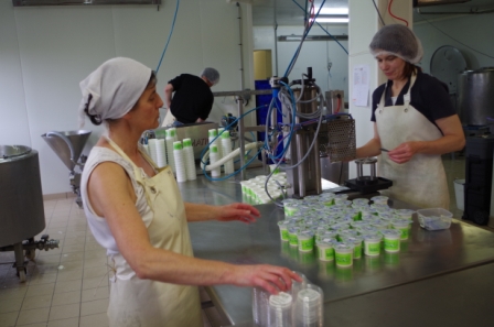 Les cailles : mis en pots en phase liquide, le lait caille dans le pot et est commercialisé ainsi après être refroidi. |