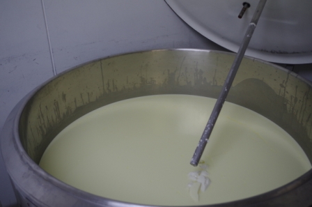 L’ensemencement en ferments et en présure : la pasteurisation a pour effet d’éliminer tous les germes présents dans le lait (les bons et les mauvais). Nous devons donc introduire dans le lait pasteurisé des ferments lactiques qui permettront l’acidification du lait et lui donneront un arôme particulier. Pour les fromages frais, l’adjonction de présure (enzyme extraite de la caillette de veau) permettra une meilleure coagulation du lait et un meilleur égouttage du caillé.